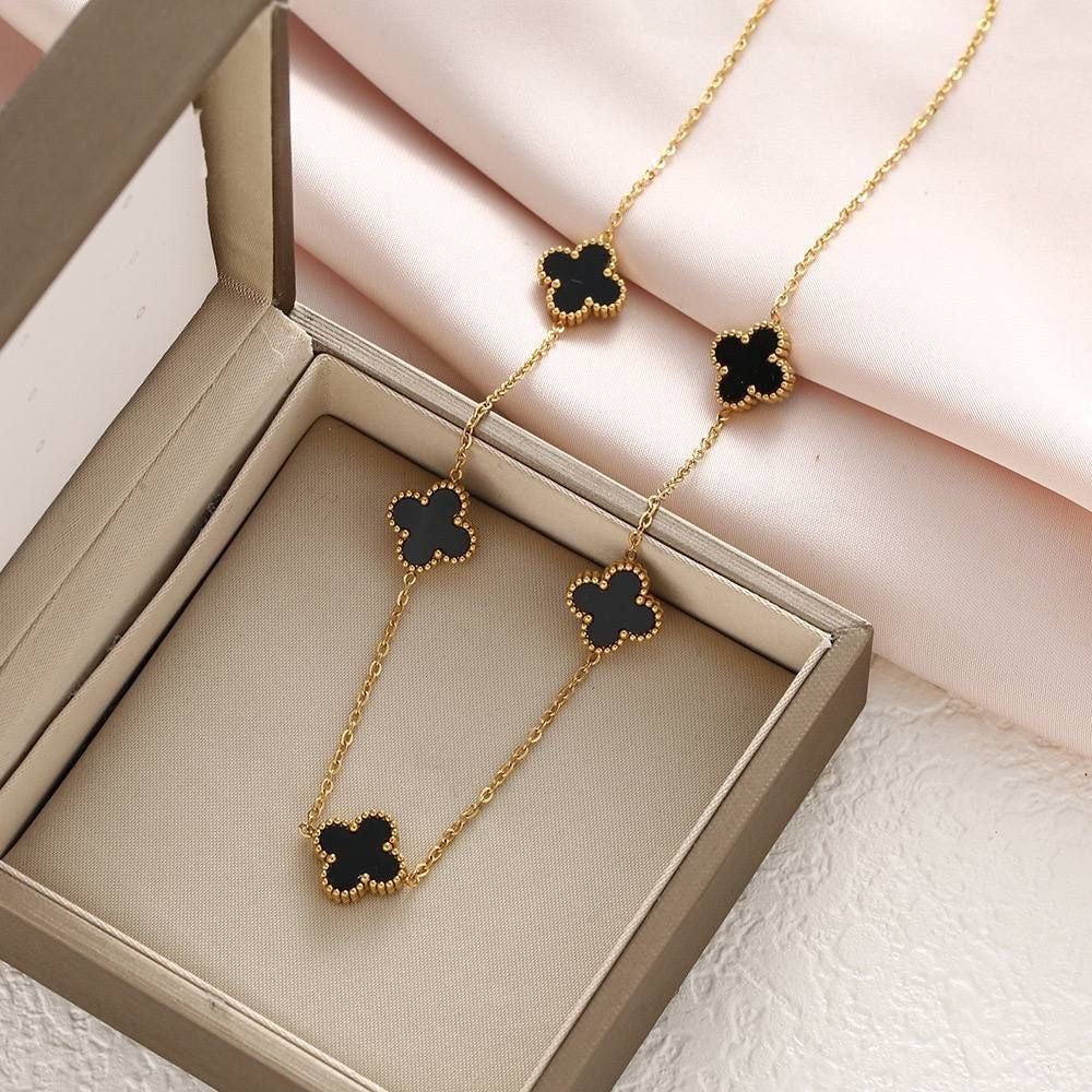 18K Gold Plating with Black Enamel – A striking contrast for a bold look.
